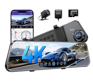 Espejo retrovisor inteligente para coche con función de grabación de video. - Grabación de video en resolución 4K. - Cámara trasera incluida. - Módulo GPS. - Tarjeta de memoria AZDOME de 64GB.