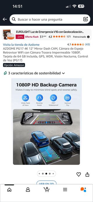 Espejo Retrovisor Inteligente con DASH CAM (Grabación + Parking) Descripción: ¡Moderniza tu coche en 5 minutos! Vendo este espejo retrovisor con Dash Cam integrada. Es la solución perfecta para conducir con seguridad y tener pruebas ante cualquier incidente, además de facilitar el aparcamiento. LO QUE LO HACE DESTACAR: 📸 Cámara Dash Cam HD: Grabación frontal de alta calidad. Protege tus viajes grabando todo lo que pasa en carretera (ideal para seguros). 🖥️ Pantalla Dual Invisible: Una pantalla LCD integrada en el propio cristal que puedes encender para ver la cámara o apagar para usarlo como un espejo convencional. 🔄 Grabación en Buc