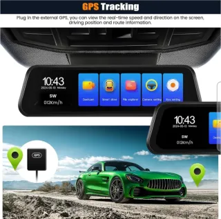 Resolución 4K Ultra HD: Ofrece grabación frontal en 2160p y trasera en 1080p, lo que permite capturar detalles nítidos como matrículas. Pantalla Táctil de 12": Utiliza un panel IPS de gran tamaño que se monta directamente sobre el espejo retrovisor original del vehículo. Módulo GPS Externo: Registra datos en tiempo real sobre la ubicación, la ruta y la velocidad del vehículo (en MPH o KM/H). Seguridad Avanzada: Incluye un Sensor G que bloquea automáticamente las grabaciones en caso de colisión y soporte para monitoreo de estacionamiento las 24 horas. Almacenamiento y Conectividad: Soporta tarjetas microSD (incluye una de 32GB)