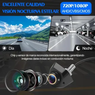 Totalmente nueva sin usar Cámara marcha atrás coche 170° gran angular con lente ajustable 360° Resolución AHD720p 1280x720 compatible 1080p y CVBS, sensor CMOS alta definición Visión nocturna clara hasta 3m Protección IP68 impermeable, cuerpo metálico resistente polvo lluvia Instalación sencilla, cableado incluido, conexión a luz retroceso Tamaño compacto, válida automóviles SUV furgonetas camiones, compatible monitores y espejo +detalles en fotos Etiquetas parking aparcamiento reversa conducción seguridad maniobra puntos ciegos lente amplia hd retrovisor asistencia vehículo sensor estacionamiento marcha atrás