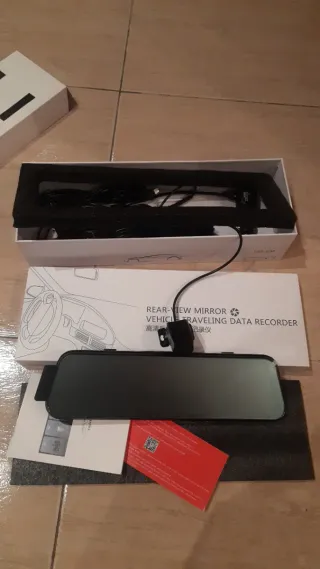Espejo retrovisor con cámara DVR para coche, graba en Full HD 1080. - Incluye manual de uso. - Cable de carga para coche. - Caja original - Las gomas para montar sobre el retrovisor original
