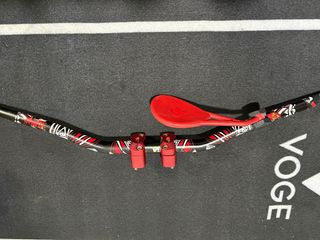 Manillar de moto con torretas incluidas.y espejo retrovisor homologado y pregable para beta Yamaha KTM honda derbi Rieju - Manillar negro con detalles gráficos en rojo y blanco. - Torretas de color rojo. - Diámetro de 28mm.