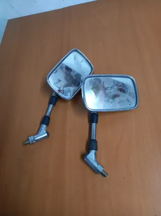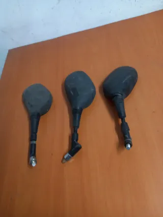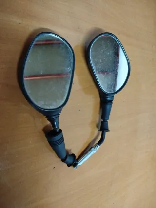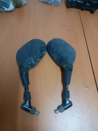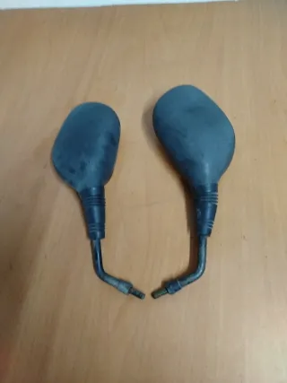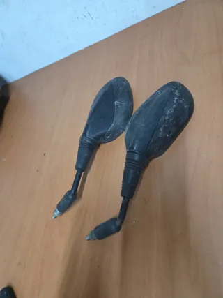 Pareja de espejos con mando de luces retrovisores para Kymco Vitality en buen estado. Precio unidad 20€. - Espejos con carcasa negra. - Incluye dos palancas de control. - Se aprecian algunos signos de uso.