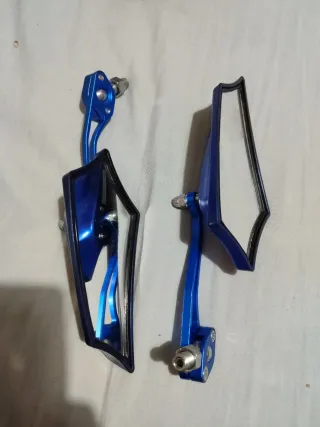 Par de retrovisores de diseño deportivo en color azul. - Fabricados en aluminio. - Diseño angular y moderno. - Compatibles con manillares de moto y bicicleta. Espejos Para X-ADV 750 Para CB125R CBR1000RR CRF250L Para CMX 300 500 CB500R CBR500R Accesorios Espejos Laterales Motocicleta Giratorio Universal 8mm 10mm Retrovisor