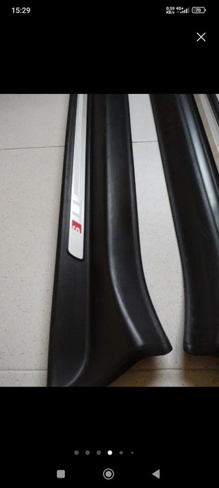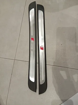 Umbrales Estriberas S Line para Audi A3 8p 2 puertas Piezas de plástico negro con detalle plateado. Originales - Logo S Line en rojo y plateado. - Set de dos estriberas. - se acen envíos x wallapop