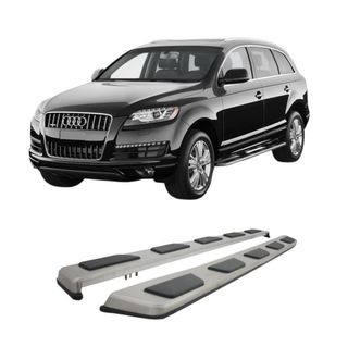 Set de 2 estribos / estriberas / pasos laterales de alta calidad fabricado en acero inoxidable, aluminio y PVC. Contiene todos los accesorios necesarios para su instalación, grapas, remaches, etc. Compatible con Audi Q7 de 2006 a 2015. Somos tienda Fisica y Online, profesionales en todo tipo de llantas, especialistas en Bmw, Mercedes, Audi, Porsche, Volkswagen, Seat, Ferrari, Ford, Kia, Etc. Disponibles todas las pulgadas, medidas y tornillerias. Garantia 2 años. Llantas altas prestaciones. Todas las marcas. Llantas Serie 1 Serie 2 Serie 3 Serie 4 Serie 5 Llantas Clase A Clase C Clase CLA Clase E Clase S Llantas A1 A2 A3 A4 A5 A6