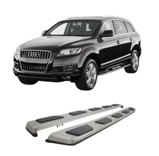Estriberas laterales para Audi Q7. Diseñadas para complementar el estilo del vehículo. - Material: Aluminio y plástico. - Acabado: Negro y plateado.