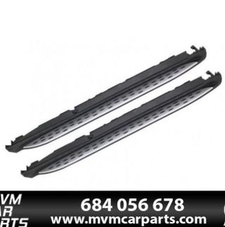 Set de estribos laterales para Range Rover Evoque Dynamic de 2011 a 2014 Fabricadas en acero inoxidable, aluminio, gomas antideslizantes y PVC Incluye las estriberas derecha e izquierda y accesorios de montaje Instalación sencilla, directamente en los anclajes originales del vehículo. Somos tienda Fisica y Online, profesionales en todo tipo de llantas, especialistas en Bmw, Mercedes, Audi, Porsche, Volkswagen, Seat, Ferrari, Ford, Kia, Etc. Disponibles todas las pulgadas, medidas y tornillerias. Garantia 2 años. Llantas altas prestaciones. Todas las marcas. Llantas Serie 1 Serie 2 Serie 3 Serie 4 Serie 5 Llantas Clase A Clase C Clas
