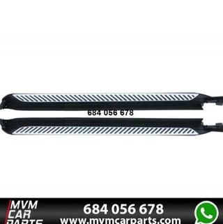 Set de estriberas laterales para Bmw X5 F15 Compatibles con vehiculos con Pack M y sin Pack M Fabricadas en aluminio reforzado, incluye todas las piezas y material de montaje necesario Disponibilidad de certificado de conformidad del fabricante Estos no son productos originales de la marca Bmw El artículo ofrecido solo es adecuado para los modelos de vehículos descritos. Somos tienda Fisica y Online, profesionales en todo tipo de llantas, especialistas en Bmw, Mercedes, Audi, Porsche, Volkswagen, Seat, Ferrari, Ford, Kia, Etc. Disponibles todas las pulgadas, medidas y tornillerias. Garantia 2 años. Llantas altas prestaciones. Todas