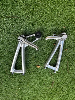 Jgo Estriberas de titanio para moto de trial. Están utilizadas pero en perfecto estado, con roces normales . Ligerisimas y mucho más robustas que cualquiera de serie. Incluye muelles. - Material: Titanio. - Diseño específico para trial. Trs trrs gas gas gasgas sherco vertigo beta scorpa montesa
