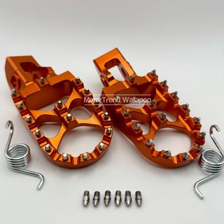 2 posapiés / reposapies / estribera de moto color naranja Alta calidad, fuertes y resistentes Largo: 12cm - 8,5cm Ancho: 5,7cm Eje: 1cm KTM: 125/150SX 250-450 SX-F/XCF 2016 | 125-500 EXC/EXCF 2017-2023 | XC/XCF/SX/SXF 2017-2022 (excepto EDICIÓN DE FÁBRICA 2022) | 85SX 2018-2022 Husqvarna: FC 250/350/450 2016 | 125-501 TX/FX/TC/FC 2017-2022 (excepto ROCKSTAR 2022) | TE/FE 2017-2023 | TC85 2018-2022 Gas Gas: MC 85 2022-2023 | 125/250 2021-2023 | F EX EC EC F 250/300/350/450 2021-2023 -------- Honda Husqvarna Suzuki Rieju Derbi HM MRX RR RMX Senda KTM Voge Benelli CFMoto Enduro Supermotard Motocross CRF YZ SIXDAYS Akrapovic IXI