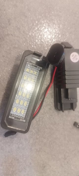 Luces de matricula para Volkswagen varios modelos. Según el papel Golf IV, V, VI, VII, Passat cc, Polo, Scirocco, Seat León e Ibiza y Skoda. Luz blanca 6500K.