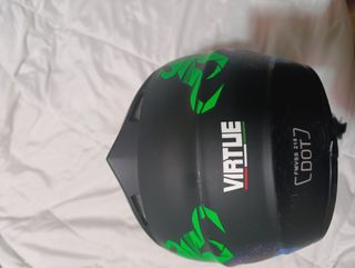 Casco de motocross con diseño de payaso. Está en buenas condiciones. -No sé negocia - Marca: VIRTUE - Talla: No especificada - Diseño: Payaso - Color: Negro con detalles en verde y rojo.