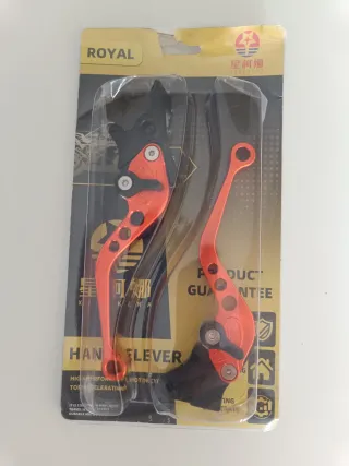 Manetas de freno y embrague para moto en color naranja. - Diseño deportivo y ligero. - Fabricadas en aluminio de alta calidad. - Ajustables para mayor comodidad.