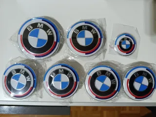 Kit de 7 insignias con el logo de BMW. Incluye diferentes tamaños para varias aplicaciones. - Set de 7 piezas. - Diseño circular con los colores característicos de BMW.