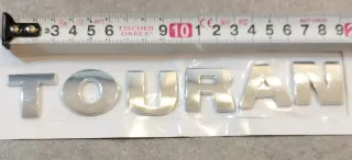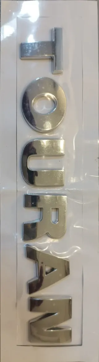 Anagrama insignia emblema para Volkswagen Touran primera generación 1t1 1t2. Hasta 2011. - Diseño cromado. - Letras individuales. - Medidas letras 25mm 25mm aprox. - Longitud total 188mm aprox. - Autoadhesivas y de fácil instalación.