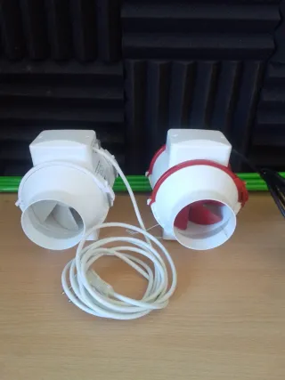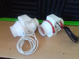 Se vende extractor de aire para conductos, ideal para ventilación. - Fabricados en plástico blanco. - Con aspas para la extracción. - Incluyen cableado.