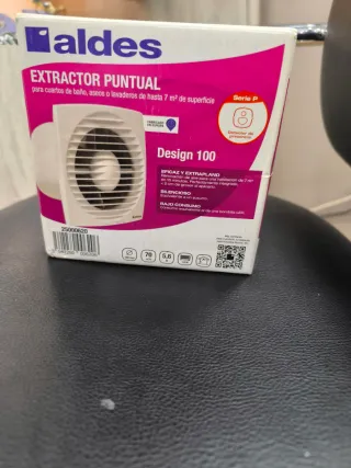 Extractor puntual Aldes Design 100 para baños y aseos de hasta 7 m². - Diseño extraplano (<2 cm de grosor). - Bajo consumo (equivalente a bombilla LED). - Fabricado en Europa. - Serie P con detector de presencia.