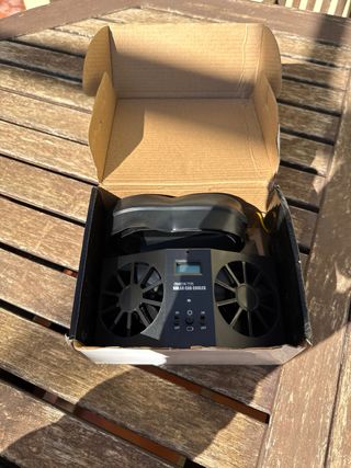 Extractor solar para coche, ideal para mantener la temperatura interior. - Carga tipo solar. - Diseño de tarjeta. - Libre de enchufar. - Apariencia de patente. - Seguridad, flexibilidad y practicidad.