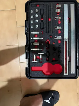 Maletín de extractores de silentblocks para diversas marcas. Incluye una selección de herramientas para la extracción y montaje de bujes. - Juego de 4 extractores de tornillo. - Juego de 8 copas de extracción/montaje. --Juego de 4 Conos metálicos de diferentes tamaños. Tambien doy la posibilidad de aquilarlo por unos dias.
