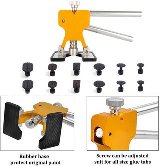 Herramienta para la reparación de abolladuras en vehículos. Faltan las piezas de plastico se pueden comprar a aparte o usad de otros kids - Fabricado en metal resistente. - Diseño universal para diferentes tipos de abolladuras. - Incluye mango en T para mayor control.