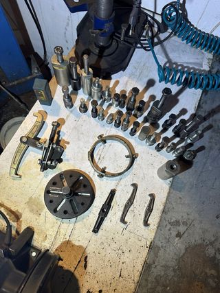 Kit de herramientas para la extracción de rodamientos. - Incluye extractor y varios adaptadores. - Fabricado en metal resistente. - Kit prácticamente nuevo - Material de taller profesional