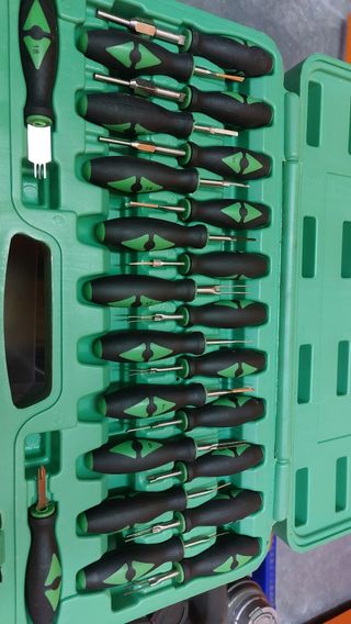 kit completo extractor nuevo. Incluye: Extractor 10 tornillos 4’2 10 tornillos 4’8 10 tornillos 5’5 Planca de extraccion Llave de leva Llave de cuadradillo