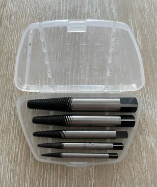 Juego de extractores para tornillos antirrobo. - Diseñados para facilitar la extracción de tornillos de seguridad. - Incluye varias medidas para adaptarse a diferentes tipos de tornillos.
