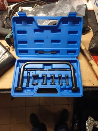Herramienta para la extracción de válvulas de motor. - Incluye juego de adaptadores. - Estructura metálica resistente. -Nuevo, usado para cambiar 2 válvulas.