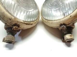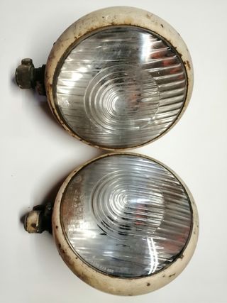 Pareja de faros delanteros clásicos, Sealed Beam, Made in U.S.A., sellados de 12 voltios. Medidas: Diámetro óptica: 18 cm. Diámetro carcasa: 18 cm. Diámetro carcasa trasera: 17'5 cm