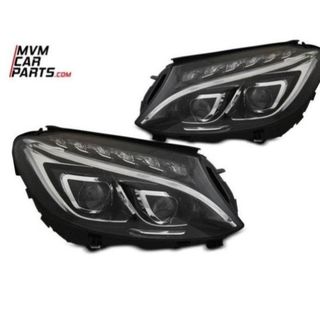 Pareja de faros delanteros halógenos con luz DRL para Mercedes Clase C W205 Sedan, C205 Coupe y SW State Apariencia tipo xénon, con conexiones para vehiculos con faros halogenos ( normales ) de serie No válidos para vehículos con xenon de origen No compatibles con versión Facelift de 2018 en adelante Conexión Plug and Play, no requieren codificación ni modificación del cableado Homologados. Somos tienda Fisica y Online, profesionales en todo tipo de llantas, especialistas en Bmw, Mercedes, Audi, Porsche, Volkswagen, Seat, Ferrari, Ford, Kia, Etc. Disponibles todas las pulgadas, medidas y tornillerias. Garantia 2 años. Llantas altas