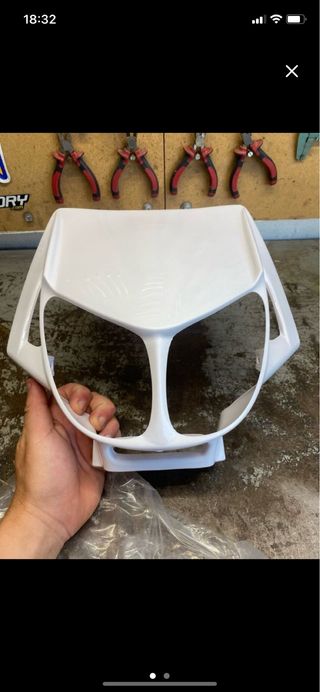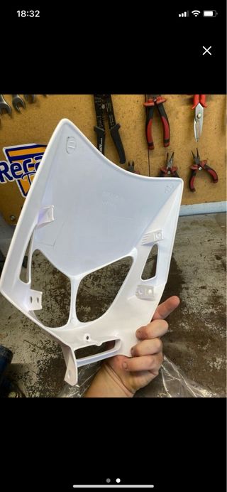 Careta delantera para Derbi Senda. Pieza de plástico blanco. - Diseño específico para Derbi Senda.
