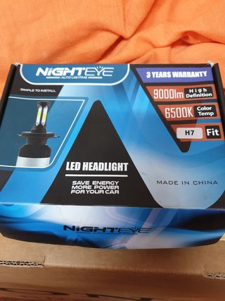 Pack de 2 bombillas LED H7 9.000 lúmenes, 72W de potencia, color blanco 6.500K, marca Night Eye, en perfecto estado y disponibles.