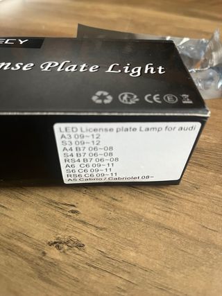 Luces LED para la matrícula de Audi, nuevas a estrenar. Compatibles con varios modelos. - Audi A3 (2009-2012) - Audi S3 (2009-2012) - Audi A4 B7 (2006-2008) - Audi S4 B7 (2006-2008) - Audi RS4 B7 (2006-2008) - Audi A6 C6 (2009-2011) - Audi S6 C6 (2009-2011) - Audi RS6 C6 (2009-2011) - Audi A5 Cabrio / Cabriolet (2008-)