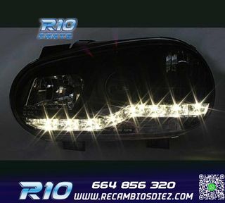 FAROS VOLKSWAGEN VW GOLF 4 LUZ DIURNA LED FONDO NEGRO