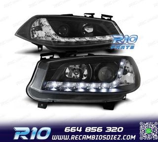 FAROS PEUGEOT 206 98-08 LUZ DIURNA REAL LED FONDO NEGRO