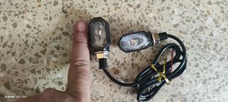 Pareja de intermitentes para moto Enduro, calle o campo. Muy pequeños, ideal para evitar romperlos en caídas. Adhesivos a portamatrículas o cualquier otro sitio. Viene ya preparado para pegar Cualquier duda preguntar sin compromiso