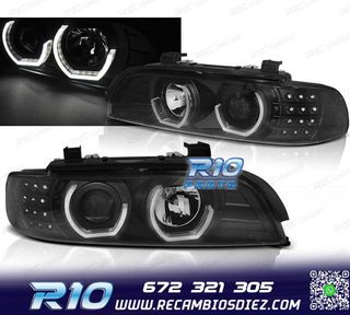 Móvel: 672 321 305 - Referencia: RLC010176. FAROS BMW E39 ANGEL EYES 3D CCFL + LED Válido para: BMW Serie 5 E39 (1995-2003) Especificaciones: Modelo: Ojo de ángel Tecnología: LED Tipo de lámpara: LED + Halógeno H1/H7 Color: Cristal transparente / Fondo negro Preparado para regulación eléctrica: No Homologación europea. Faros con E-Mark (Certificado europeo) grabado en el cristal. Montaje. Fácil instalación sin modificar nada en el vehículo. Kit completo. Kit compuesto por 2 faros, lado izquierdo y derecho. Garantía. Tiene una garantía de 3 años. ANGEL EYES Estos no son pro