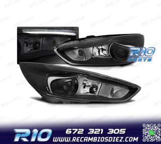 FAROS PARA FORD FOCUS 01-04 LUZ DIURNA LED FONDO NEGRO H7