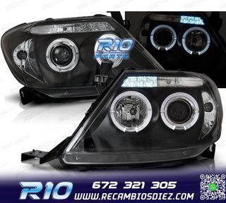 FAROS PARA TOYOTA HILUX 05-11 LED OJOS ANGEL NEGROS
