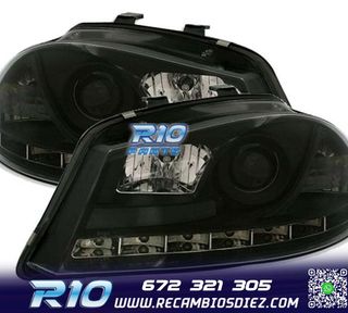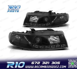 FAROS SEAT IBIZA CORDOBA 6L 02-08 LUZ DIURNA LED FONDO NEGRO