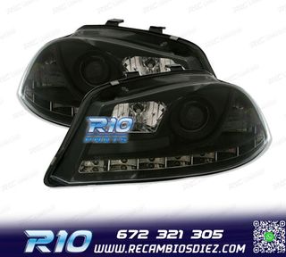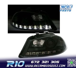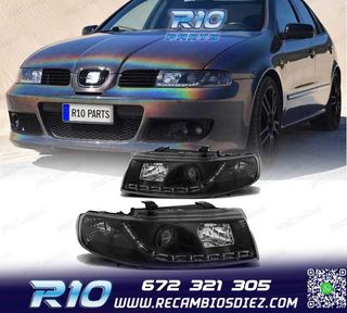 FAROS SEAT LEON ALTEA TOLEDO 04-09 LUZ DIURNA LED FONDO NEGR