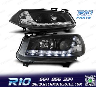 FAROS PEUGEOT 206 98-08 LUZ DIURNA LED FONDO NEGR