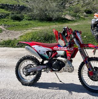 Gas Gas 300 tpi año 2023 , en bastante buen estado con 215h y 6000 km . Cargada de extras como : escape S3 HARD , silenciador FMF , puños S3 , estriberas retrasadas S3 , puntera de freno S3 , mousse michelin soft atras , protector de hierro de escape carter y bieletas , protectores de discos de freno basculante y tapas de motor , ruedas al 90% , faro led , pastillas de freno nuevas , suspension delantera nueva con 20 h , itv hasta 2027 y todas las piezas sin abrir .