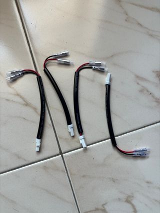 Adaptadores para intermitentes LED de Yamaha. Permiten la conexión de intermitentes LED a la instalación original. - Conectores tipo pala. - Cableado con funda protectora.