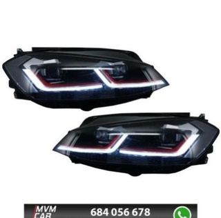 REF: AL006655 Set de dos faros (izquierdo y derecho) con luz diurna Real DRL LED tipo U para VW GOLF VI 10/2008-2012 look golf 7 GTI Fondo color negro. Tipo de bombilla: H7 y H1, diurna LED, intermitente PSY24W. En el precio se incluyen los dos faros. Para vehículos con regulación eléctrica de alcance de luces. No adecuado para vehículos con xenon de serie. Homologación E-Mark (ECE-R87 aprobada) grabado en el cristal del faro. FAROS LUZ DIURNA REAL LED PARA VW GOLF VI 08-12, Fondo Negro look 7 GTI