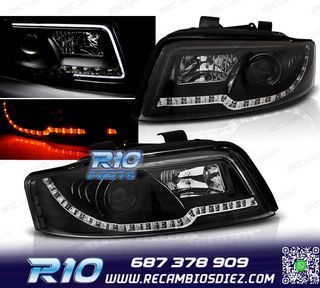 FAROS AUDI A4 B6 00-04 LUZ DIURNA LED FONDO NEGRO