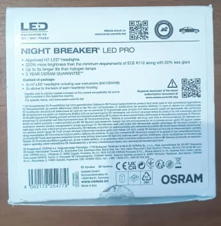 Par de bombillas LED H7 OSRAM NIGHT BREAKER. - Modelo: 6421UDWNS - Voltaje: 12V - Homologadas en españa. Descargar papel de homologación en pagina web de osram - Incluye adaptadores