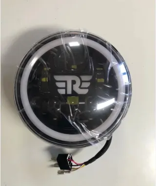 Faro redondo de 7 pulgadas con tecnología LED y un aro lumínico integrado. Ideal para personalizar tu vehículo. - Diseño circular moderno. - Aro lumínico blanco. - Conector para instalación.