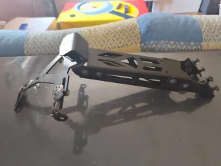 Soporte para matrícula de moto en color negro. Fabricado en metal. Tiene rota el soporte donde va alojada la luz de posición. Se puede poner un trozo de chapa y aprovechar los taladros de sujeción para colocarlo en la moto. - Diseño angular. - Múltiples puntos de anclaje.